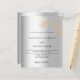 Une faire-part de mariage moderne, élégante et minimaliste. Arrière - plan à l'aspect argent faux décoré de faux floraux d'or. Personnalisez et ajoutez vos noms et les détails du mariage. Lettres de couleur noire.