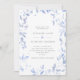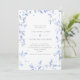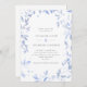 Une faire-part de mariage moderne et fraîche avec une bordure de feuilles d'aquarelle bleu clair sur un arrière - plan blanc propre. Personnalisez avec vos détails en gris.