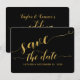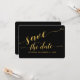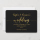 Carte d'enveloppe de faire-part de mariage avec calligraphie dorée en fonte swash sur fond noir.