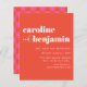 Invitation de Mariage à Carreaux Rétro Rose et Orange avec Typographie Gras sur Budget