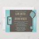 Faire-part de mariage traditionnel mais moderne avec une belle clé squelette et un trou de serrure en forme de cœur. Le faire-part a des couleurs marron foncé avec des tons bleus. La police est tendance, mais elle peut être personnalisée pour répondre à vos besoins, y compris la police et la couleur.