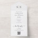 Cette invitation de mariage chic et minimaliste tout-en-un peut être personnalisée avec vos initiales de monogramme et les informations de votre jour de mariage. L'invitation comprend une carte RSVP perforée avec le code QR de votre site web de mariage. Conçu par Thisisnotme