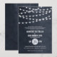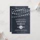 Faire-part de mariage d'été moderne chic avec des lampes à cordes élégantes et simples accrochées au dessus et un mélange élégant de polices de script modernes et de calligraphie sur un arrière - plan imprimé de texture fausse aquarelle. Un design simple et élégant, parfait pour l'été ! Cliquez sur le bouton CUSTOMISER IT pour customiser les polices, déplacer du texte et créer votre propre conception unique d'invitation unique.