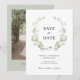 Faire-part de mariage bohème à motif botanique de feuillage vert sauge