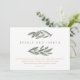 Elégant faire-part de mariage botanique aquarelle avec des feuilles à feuillage persistant romantiques encadrant vos détails mariages. Personnalisez avec vos informations de cérémonie dans la typographie couleur nature.