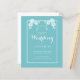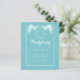 Faire-part de mariage bleu avec texte blanc et accents floraux le long de la bordure mince. Les couleurs et le texte sont entièrement modifiables en ligne en quelques clics, mais si vous avez besoin d'aide contactez le concepteur à ArtByLiz@gmx.com et la carte sera customisée pour vous sans frais supplémentaires.
