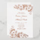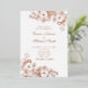 Ce luxueux faire-part de mariage présente des illustrations florales en feuille d'or rose dans les coins supérieur et inférieur, encadrant votre texte personnalisé avec une élégance chatoyante. Associé à un script d'inspiration vintage et à des polices serif sur un arrière - plan blanc épuré, ce design est idéal pour les couples à la recherche d'un style mariage intemporel et romantique. Un endroit idéal pour les mariages de jardin, classiques ou formels en toute saison.