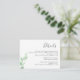 Une simple carte de détails de faire-part de mariage, pour compléter votre suite de faire-part de mariage d'automne. Ce design présente une branche d'eucalyptus à l'aquarelle avec un titre en police de caractères manuscrits et vos détails en police sans serif.