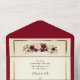 Faire-part de mariage floral à la rose rouge de Bourgogne à l'aquarelle. Avec une beauté et une ambiance bête.