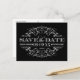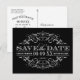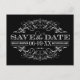 Gracieux et dramatique, cette carte postale de save the date présente un véritable fond noir avec des fioritures en arabesques blanches croquantes dans un cadre en filigrane vintage orné. Le contraste frappant du blanc sur noir donne à ce design une allure sophistiquée et une touche formelle parfaite pour les mariages modernes, en noir-tie ou en hiver. Le verso détaillé pour l'expédition comprend les champs pour les noms, la date du mariage, le lieu de la cérémonie, le site web et l'adresse du destinataire. Tout le texte est entièrement personnalisable.