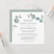 Des brins de feuillage d'eucalyptus mettent en valeur cette invitation de mariage moderne de forme carrée avec une élégance subtile. La mise en page du texte avec une police à empattements ajoute un raffinement supplémentaire pour transmettre vos détails de mariage de manière magnifique. Ce schéma de couleurs convient aux mariages de toutes les saisons de l'année. Personnalisez le texte dans le modèle de texte facile à utiliser. Vous pouvez modifier le libellé pour l'adapter à vos préférences personnelles. Cette invitation est également disponible dans un style rectangulaire 5x7.