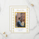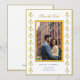 Jolie carte de faire-part de mariage jaune et blanc avec une bordure de souci à l'aquarelle et une photo de couple.