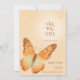 Simple. Moderne. Élégant. Belle invitation de mariage Save the Date orange monarque avec photo au verso de l'invitation. Cette invitation de mariage présente une illustration à l'aquarelle d'un papillon serein volant vers un soleil éclatant de rayons solaires. Il y a de belles nuances d'orange, de brun et de crème atténuées. Modifiez le verso de cette carte avec une photo du couple fiancé.