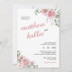Invitez vos invités avec une romance intemporelle en utilisant cette invitation de mariage à l'aquarelle florale, mettant en vedette des roses roses douces et des feuilles d'eucalyptus délicates. La bordure florale élégante est placée dans les coins supérieur droit et inférieur gauche, créant un design gracieux et équilibré. Parfaite pour les mariages romantiques, de jardin, élégants et modernes, cette invitation peut être personnalisée avec vos noms, date et détails du lieu pour une présentation raffinée et mémorable. W014