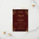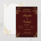 Annoncez votre mariage avec une élégance et un luxe intemporels ! Cette invitation sophistiquée présente un fond bordeaux ou burgundy profond qui transmet instantanément une atmosphère riche et royale. Elle est magnifiquement rehaussée de fioritures botaniques dorées métallisées aux coins, avec un aspect feuille d'or.