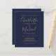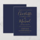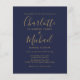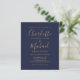 Comportant des noms de style signature, ce faire-part de mariage élégant et économique avec écriture dorée et bleu marine peut être personnalisé avec vos informations dans une typographie chic. Conçu par Thisisnotme©