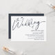 Faire-part de mariage à l'écriture moderne minimaliste simple "le mariage de" avec un fond bleu-gris foncé uni et une fleur sauvage dans un pot en blanc au verso de l'invitation. Envoyez-moi un message si vous avez besoin d'aide ou si vous avez des demandes spéciales.