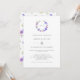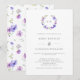 Un joli faire-part de mariage présentant une couronne ouverte à l'aquarelle de fleurs violettes et de feuilles vertes avec votre monogramme / initiales. Le verso présente un motif de fleurs violettes.