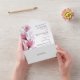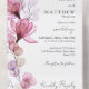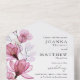 Cette invitation de mariage tout-en-un présente de jolies fleurs roses poussiéreuses transparentes et une typographie élégante. L'invitation comprend une carte-réponse perforée qui peut être adressée individuellement ou laissée vierge pour que vous puissiez écrire à la main l'adresse de vos invités. Conçu par Thisisnotme©