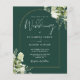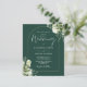 Cette invitation de mariage élégante et botanique à feuilles de verdure peut être personnalisée avec vos informations en typographie chic avec vos initiales monogramme au verso sur fond vert émeraude. Conçu par Thisisnotme