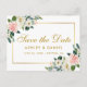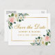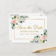 Carton d'invitation de fiançailles à motif floral rose et blanc en aquarelle avec texte doré