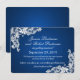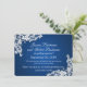 Joli faire-part de mariage à motifs de dentelle blanche vintage et bleu saphir. Personnalisez avec le texte selon vos besoins.