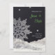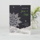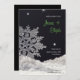 Snowflake Faire-part de mariage - Jolie invitation de mariage avec un grand flocon d'argent sur un arrière - plan noir sur la neige - idéal pour les mariages d'hiver et les Mariages de Noël.