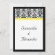 Ajoutez votre photo et votre texte personnalisé en ligne sur ce faire-part de mariage recto-verso noir, blanc et jaune. Arrière-plan élégant et épuré à motif damassé blanc et noir avec une touche de jaune ensoleillé. Une belle touche pour un événement estival.