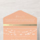 Élevez votre journée spéciale avec cette faire-part de mariage de pêche tout-en-un chic. Doté de magnifiques lampes à cordes dorées et d'une photo personnalisée de vous et de votre partenaire sur le dos, ce design moderne allie charme rustique et élégance. Personnalisez facilement avec votre propre photo, les détails du mariage et les informations RSVP, créant une invitation mémorable qui capture parfaitement votre histoire d'amour. Idéal pour une fête romantique et intimiste !
