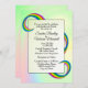 Joli ruban pastel multicolore design. Mets les prénoms du couple d'un côté. Ajoutez toutes les informations, y compris quand et où se trouve la cérémonie et l'heure et le lieu de la réception. Lors de vos invitations, veuillez triple vérifier toutes vos orthographes et dates.
