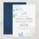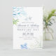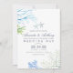 Faire-part de mariage sur le thème de l'océan bleu marine et blanc tendance avec des fougères de mer, des algues et des étoiles de mer conçus pour être rapidement et facilement personnalisés aux spécificités de votre événement.