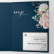 Ce faire-part de mariage bleu marine à trois plis floral présente de beaux arrière - plans classiques chic de rose pastel et bleu marine avec une typographie moderne simple et une calligraphie élégante pour donner un ton sophistiqué à tout style d'événement. Chaque produit est agrémenté de roses roses roses rousses et d'hydrangées de pêche et d'ivoire, disposées avec des eucalyptus luxuriants et des feuilles vertes, ainsi que des cadres en or géométrique intemporels pour un look luxueux. Mélangez et associez cette collection de coordination pour une esthétique mariage de rêve sans effort et personnalisée pour un large éventail de styles décontractés à formels. Pour des conceptions plus coordonnées, cette conception est également disponible en blanc et noir. Comme pour tout notre design, si vous avez des questions ou des demandes spéciales, n'hésitez pas à demander.