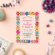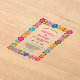Faites une déclaration audacieuse et belle avec ce Faire-part de mariage acrylique mexicain moderne, avec un cadre floral dynamique inspiré de l'art folklorique mexicain traditionnel. Imprimé sur acrylique élégant et transparent, le design présente des fleurs vives dans des tons riches de rouge, jaune, rose et turquoise, créant un contraste frappant contre l'arrière - plan clair. La bordure fleurie colorée ajoute un charme festif, tandis que la typographie moderne et la disposition propre apportent élégance et raffinement. Parfait pour les couples qui souhaitent célébrer leur patrimoine avec une touche fraîche et contemporaine, cette invitation donne le ton d'une fête joyeuse et inoubliable.