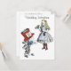 Cette carte d'invitation de mariage amusante et décalée est conçue pour les fans du livre de 1865 "Les Aventures d'Alice au pays des merveilles" de Lewis Carroll. Sur le devant de la carte figurent des illustrations d'Alice et du Chapelier fou avec des garnitures de tartan ajoutées à leurs tenues - parfait pour un mariage écossais, ou pour une mariée et un marié d'origine écossaise ! Alice regarde la bouteille contenant la potion magique qui la réduira à seulement dix pouces de hauteur pour qu'elle puisse entrer dans le beau jardin. Le Chapelier fou a l'air, eh bien, légèrement excentrique ! Si vous êtes un fan des Aventures d'Alice au pays des merveilles, c'est la carte idéale pour informer votre famille et vos amis de la date de votre mariage imminent. Vous pouvez facilement personnaliser la carte pour l'adapter à l'occasion, par exemple une fête de fiançailles, une douche de mari