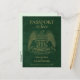 Ces cartes de faire-part de mariage sont une façon amusante de faire savoir à vos amis et à votre famille votre mariage de destination à venir. Conçues pour ressembler à un passeport, elles présentent un fond en cuir vert avec un aigle doré sur le devant avec les noms des mariés, la date et le lieu de la cérémonie. Le verso ressemble à l'intérieur d'un passeport avec une photo et des tampons d'entrée mignons.