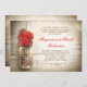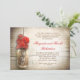 Fond en bois rustique romantique et pot de maçon avec fleurs rouges pour une fête d'anniversaire de mariage ou des invitations pour un dîner d'anniversaire de mariage. Je suggère un beau papier texturé lin pour ce design.