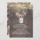Faire-part de mariage anniversaire de mariage rustique vintage avec jar mason floral mauve et or, guirlande de lumieres et fond en bois de grange ancien.