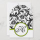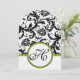 Vintage Moderne Noir et Blanc Motifs de Damas Floral avec Apple Green Trim Wedding Invitations. Parfait pour Rococo Baroque, Renaissance médiévale, Art Déco Art Nouveau, Roaring 20s Gatsby, Mariages victoriens ou Elégant Farmhouse Mariage lieux thématiques.