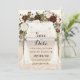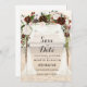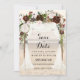 Faire-part de mariage avec guirlande de vigne fleurie et arche en bois flotté de plage