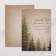 Un faire-part de mariage élégant avec une illustration d'arbres persistants sur un fond marron.