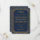 Ces faire-part présentent une palette de couleurs bleue et or, un cadre géométrique, des motifs géométriques et d'autres détails stylistiques inspirés de l'Art Déco et des années folles. Vous pouvez personnaliser les champs de texte d'exemple à votre goût.