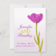 Magnifique tulipe violette unique sur un faire-part de mariage floral en papier gris-violet à effet rustique moderne. Modifiez ce faire-part avec vos propres mots et détails de mariage. Invitation d'art raffiné de style campagne romantique simple. Conception et peinture à l'aquarelle par Sarah Trett.