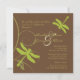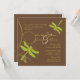 L'invitation présente des couleurs vert printemps et marron chocolat avec de belles fleurs et des libellules vertes entourant du texte entièrement personnalisable. Zone d'information RSVP disponible sur le invitation, donc pas besoin d'autres RSVP!