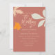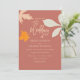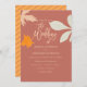 Invitation mariage de automne avec des couleurs tendance mangue, pêche pâle, pêche foncée et crème. Le script d'écriture manuscrite cursive et les feuilles aquarellés sont à la minute dans les tendances de carte Mariage.