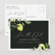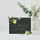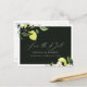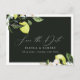 Élégante carte de faire-part de mariage aux citrons, feuilles et fleurs botaniques aquarellés. La carte présente un graphisme calligraphique élégant "Sauver la date" au recto et au verso.