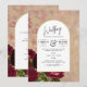 De jolies roses rouges profondes ornent ce faire-part de mariage botanique vintage sur le thème de l'arche. Il existe une variété de types de cartes et de papiers pour tous les budgets, y compris le carton traditionnel 5x7 et le papier flyer (prix le plus bas). Pour les voir tous, consultez 'disponible sur - tous les produits' à la base de la section 'à propos de ce design'.