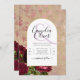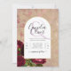 De jolies roses rouges profondes figurent sur ce faire-part de mariage botanique vintage à thème d'arche. Il existe une variété de types de cartes et de papiers pour tous les budgets, y compris le carton traditionnel 5x7 et le papier flyer (prix le plus bas). Pour les voir tous, consultez 'disponible sur - tous les produits' à la base de la section 'à propos de ce design'