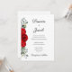 La conception présente un bouquet latéral de fleurs rouges et d'eucalyptus. Le design est minimaliste, mais élégant et chic.