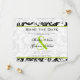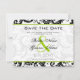 Faire-part de mariage à motifs de damas floraux noirs et blancs vintage modernes avec une garniture vert pomme. Parfait pour les thèmes de mariage rococo baroque, renaissance médiévale, art déco art nouveau, Gatsby des années 20, victorien ou élégant fermes de campagne.