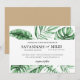 De belles invitations aquarelles avec bordure de feuille de palmier tropical donnent le ton à votre événement tropical. Celles-ci sont parfaites pour un mariage sur la plage ou de destination, une douche, une fête sur la plage, une fête d'été ou un événement d'entreprise tiki. Personnalisez ou modifiez davantage en cliquant sur le lien "personnaliser davantage" et utilisez l'outil de conception pour modifier ce modèle. Tous les styles de texte, couleurs et tailles peuvent être modifiés pour répondre à vos besoins. Besoin d'aide pour personnaliser ? Envoyez-moi un message !